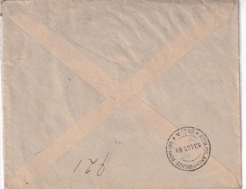Storia postale. Espresso da Milano *Espresso* 30/08/1930 a Reggio Emilia 31/03/1930
