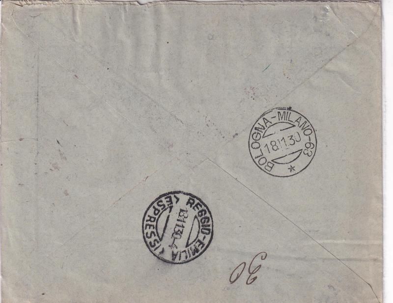 Storia postale. Espresso da Bergamo 13/07/1931 a Reggio Emilia 13/07/1931