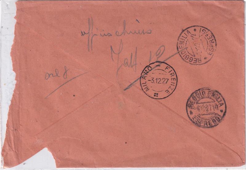 Storia postale. Espresso da Carrara 02/12/1929 a Reggio Emilia 02/12/1929