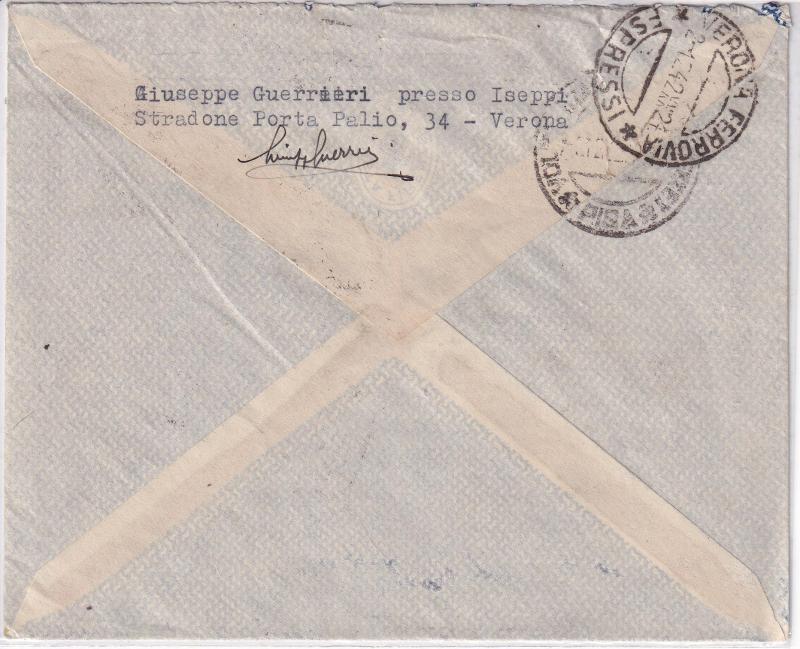 Storia postale. Espresso da Verona 02/12/1942 a Volterra 02/12/1942