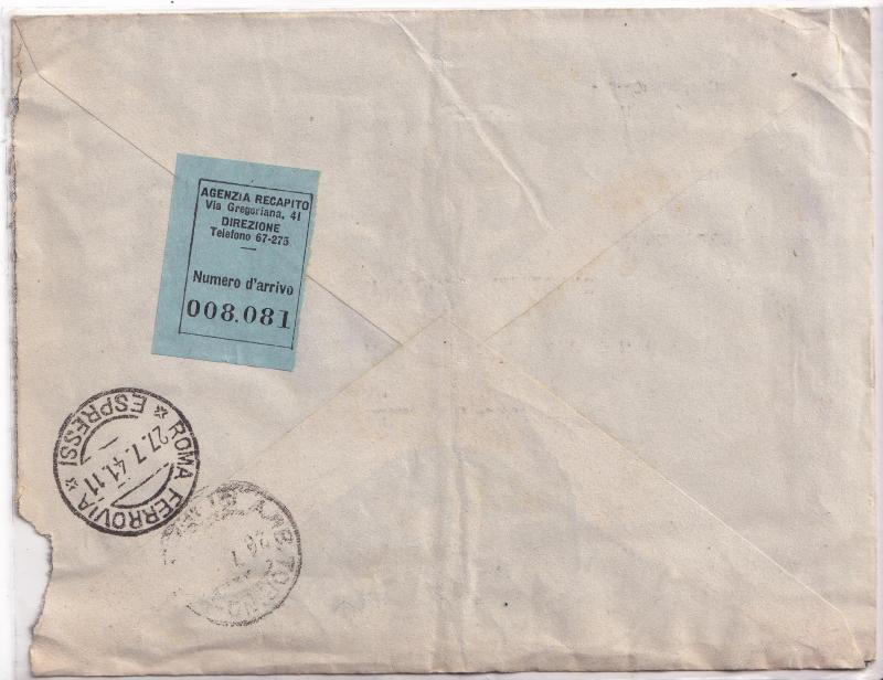 Storia postale. Espresso da La Spezia 27/07/1941 a Roma 27/07/1941