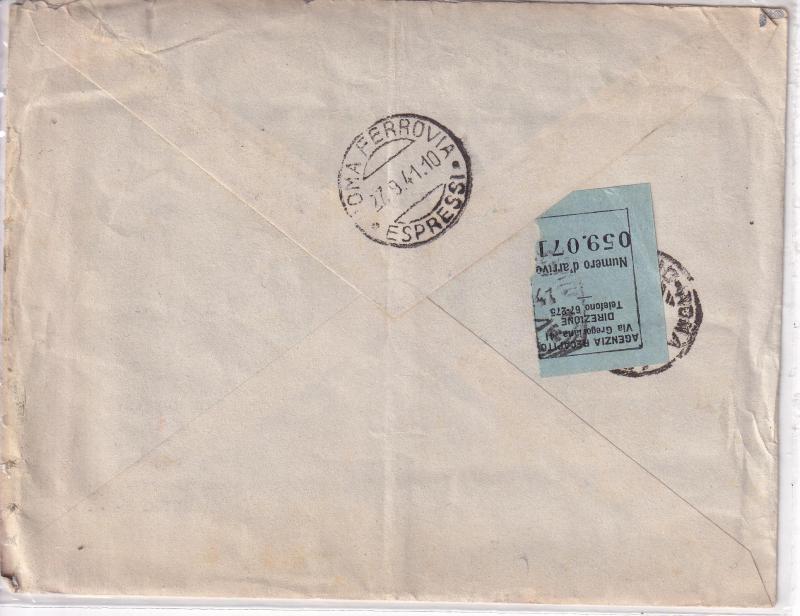 Storia postale. Espresso da La Spezia 27/09/1941 a Roma 27/09/1941
