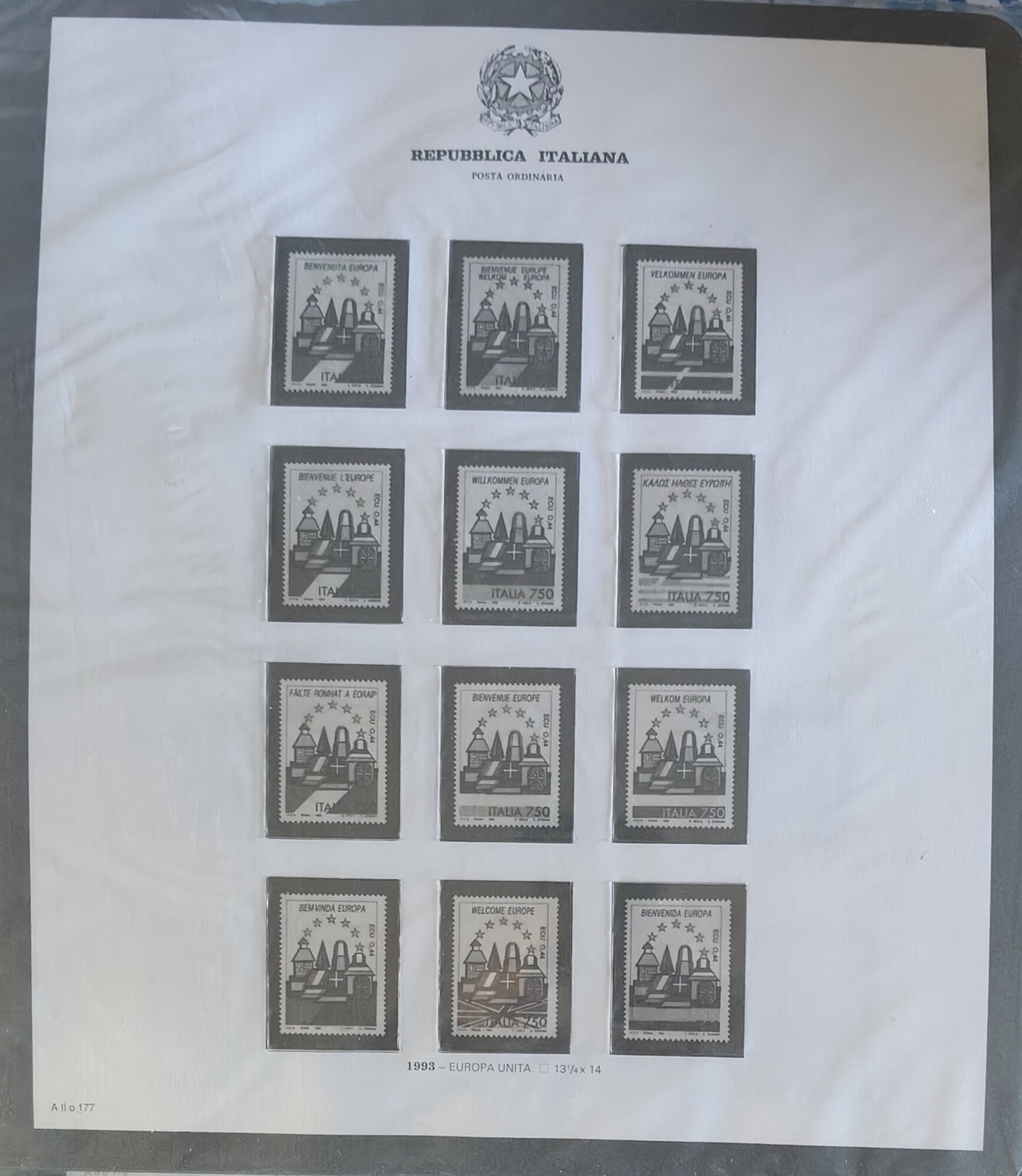 Bolaffi Fogli album Milord Italia francobolli singoli Anno 1993 Europa Unita