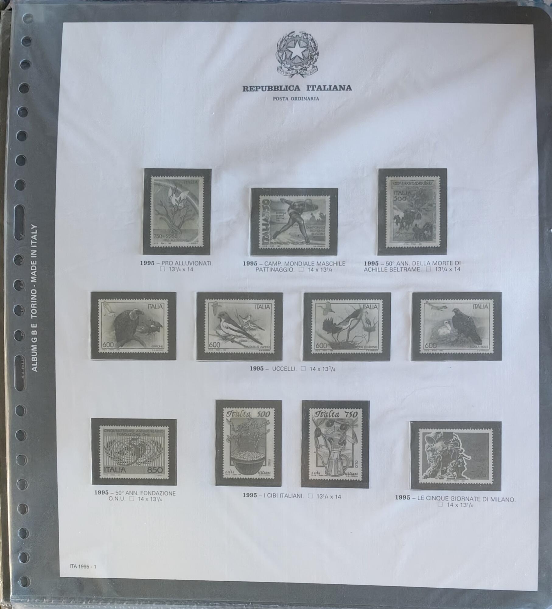 Bolaffi Fogli album Milord Italia francobolli singoli Anno 1995