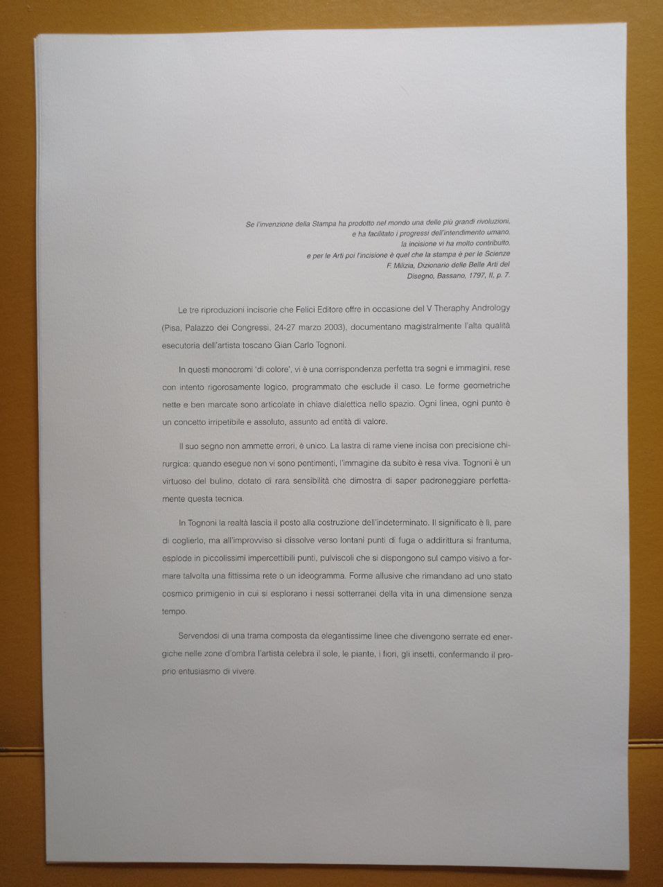 Cartella di 3 stampe che riproducono 3 incisioni di Giancarlo Tognoni