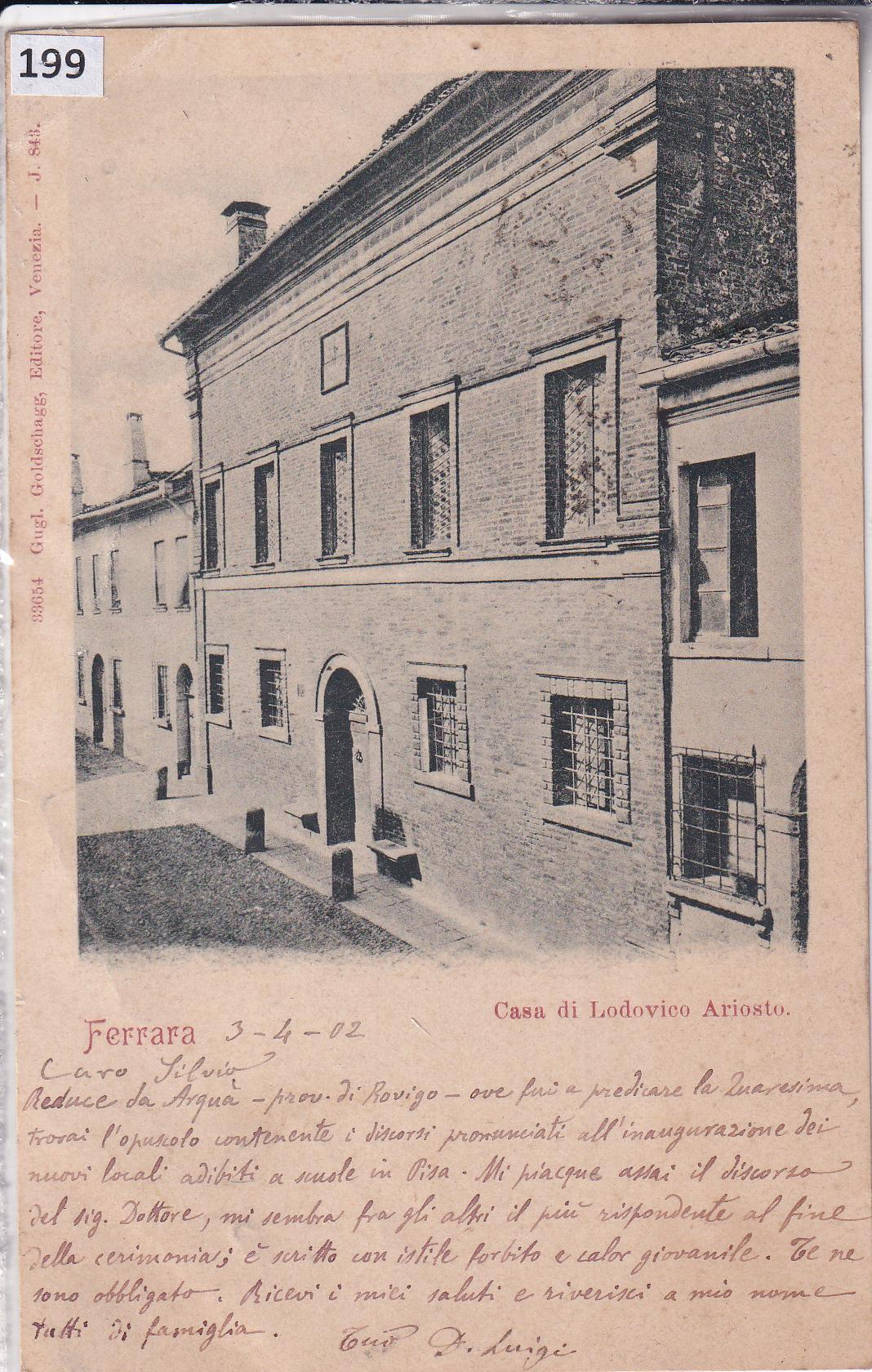 Cartolina illustrata Ferrara Casa di Lodovico Ariosto