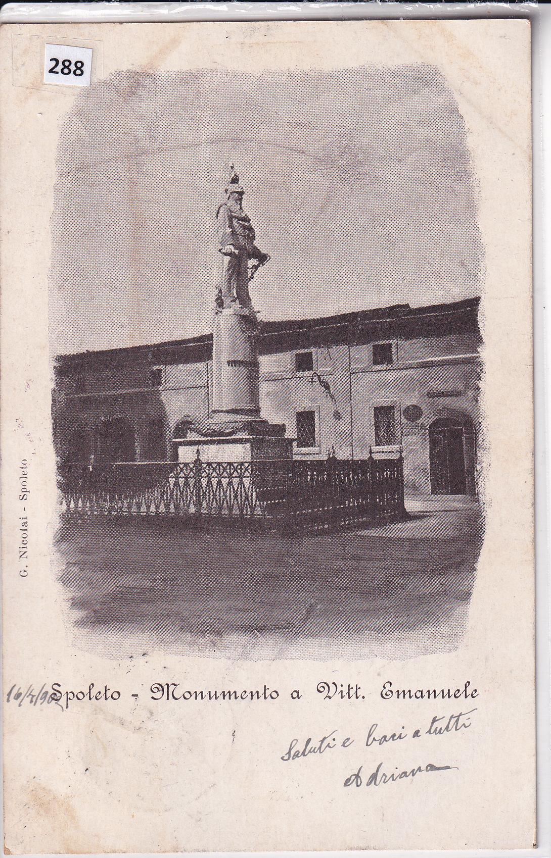 Cartolina illustrata Spoleto Monumento a Vittorio Emanuele