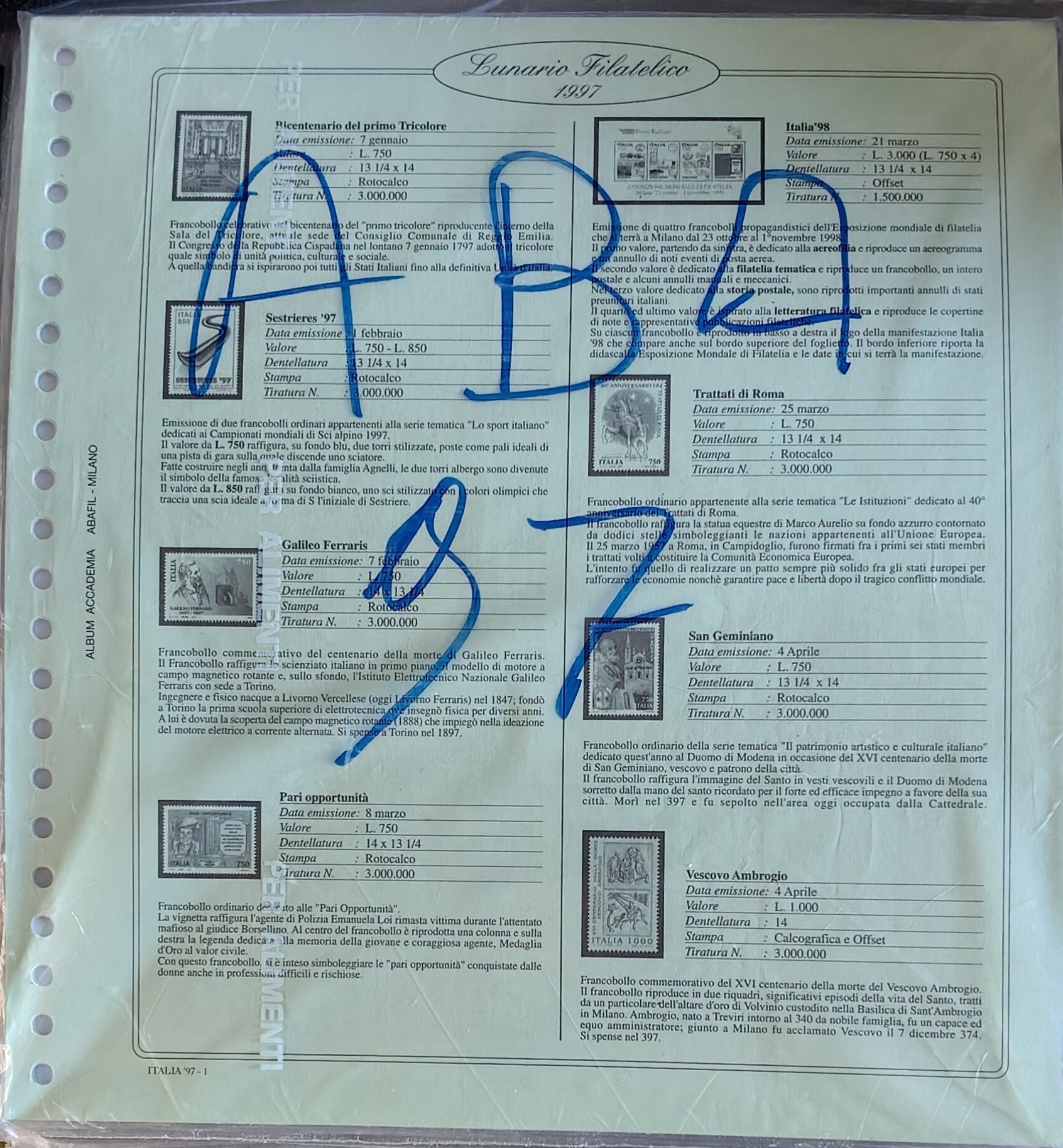 Fogli Album Accademia Abafil Italia 1997 e 1998