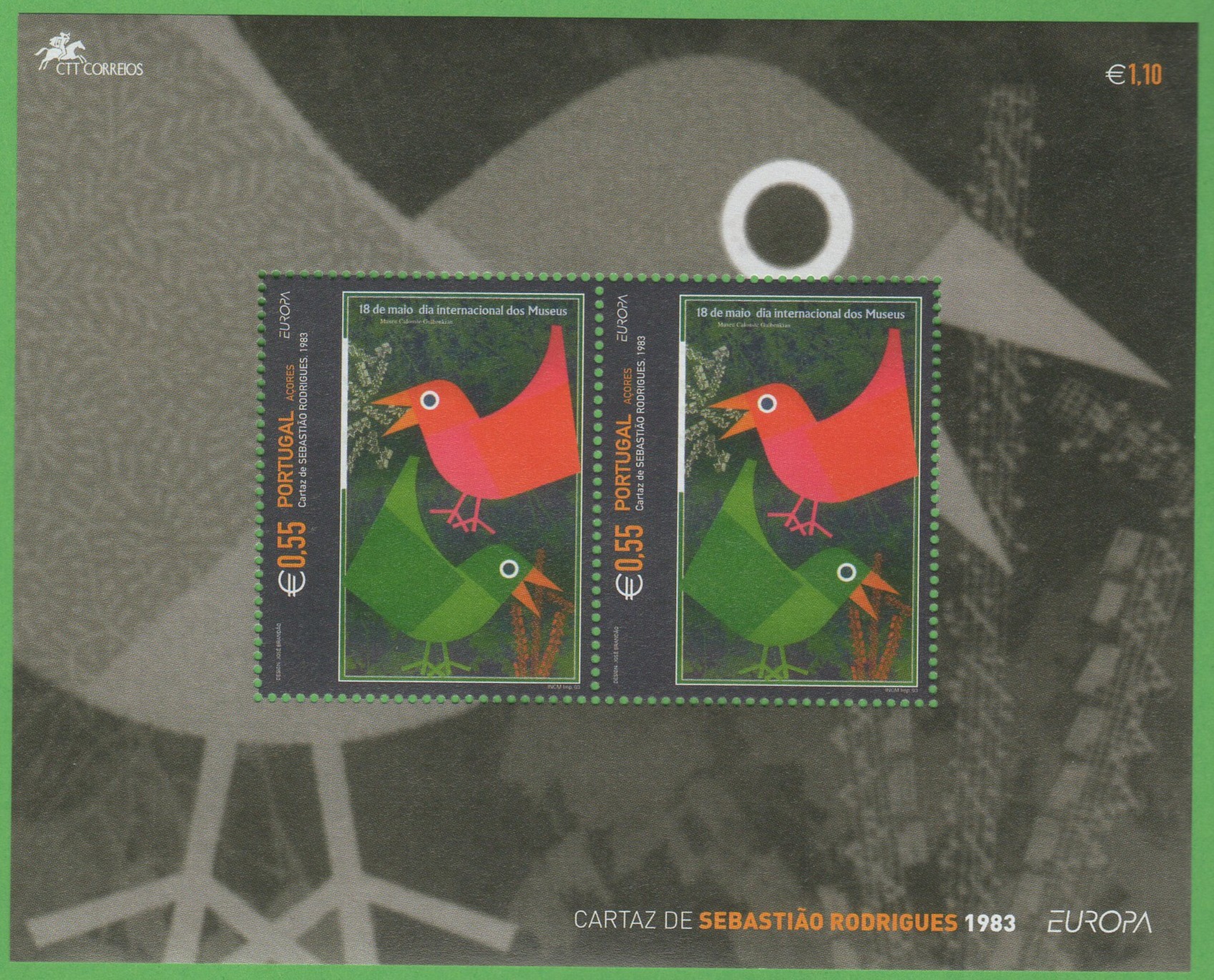 Francobollo stampato in foglietto di 2 valori