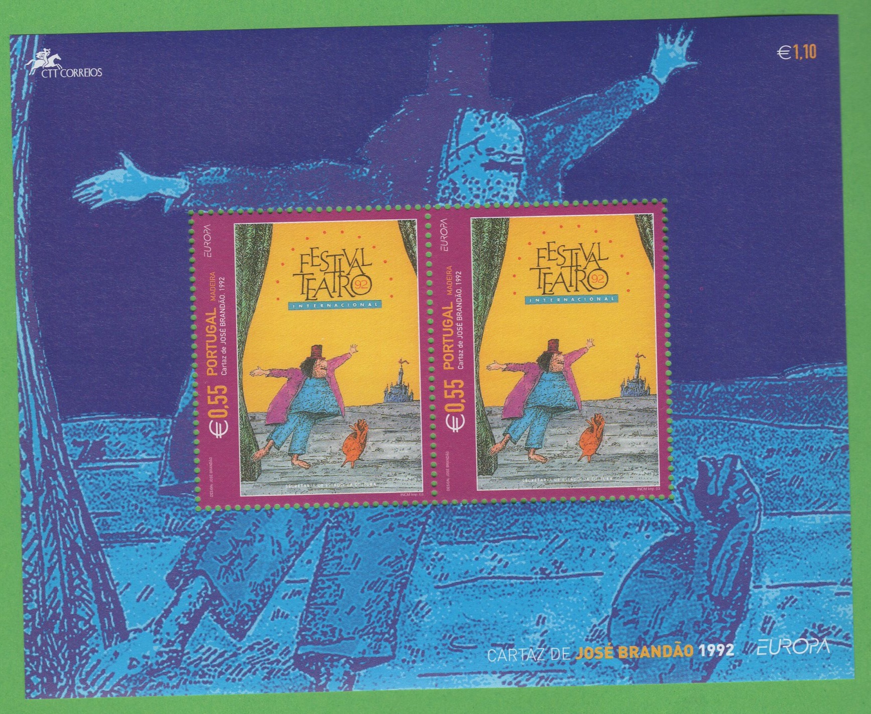 Francobollo stampato in foglietto di 2 valori