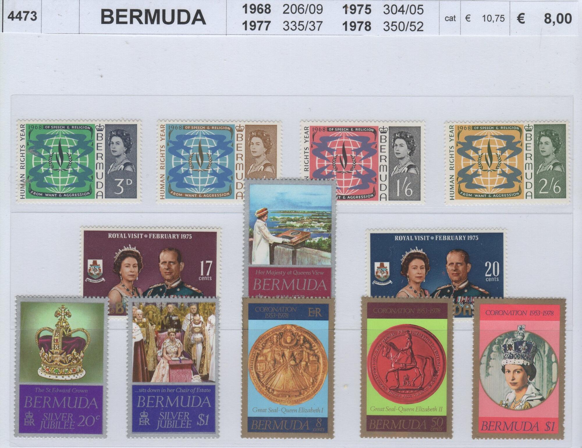Francobolli Bermuda Anni 1968-1975-1977-1978 Varie emissioni celebrative della Regina Elisabetta II