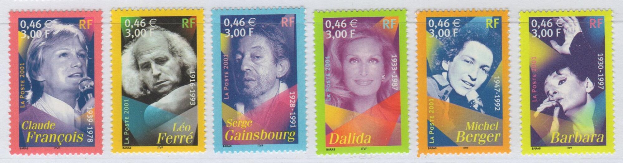 Francobolli Francia Anno 2001 Personaggi celebri Artisti della canzone