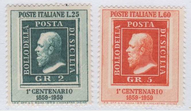 Francobolli Italia Repubblica Anno 1959 Centenario del francobolli del Regno di Sicilia