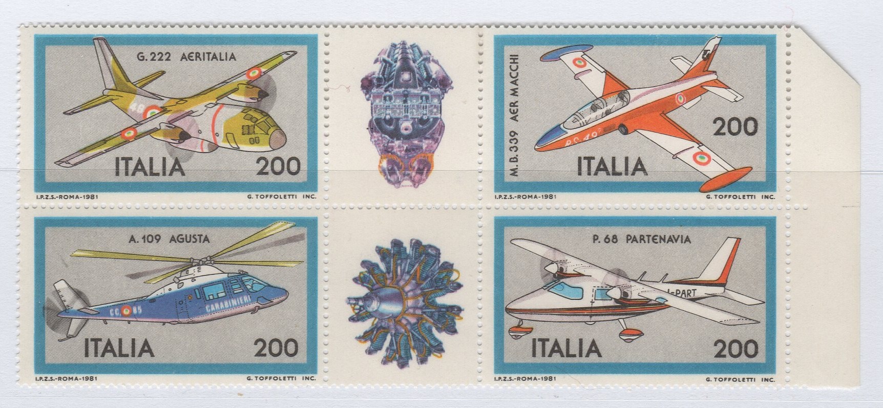 Francobolli Italia Repubblica Anno 1981 Costruzioni aeronautiche italiane Prima serie