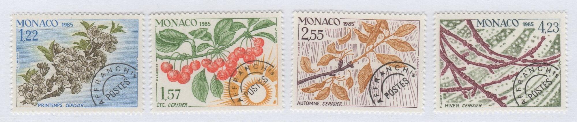 Francobolli per stampati Monaco Anno 1985 Le quattro stagioni del ciliegio Preobliterati