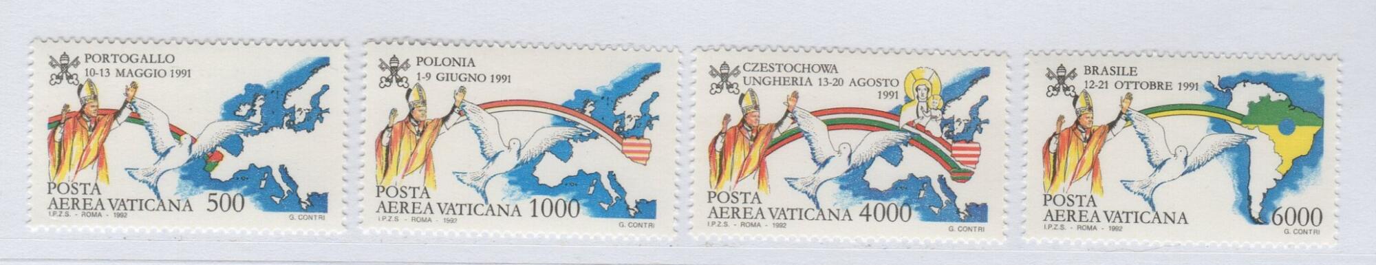 Francobolli Vaticano Anno 1992 Posta Aerea I viaggi nel mondo di Giovanni Paolo II nel 1991