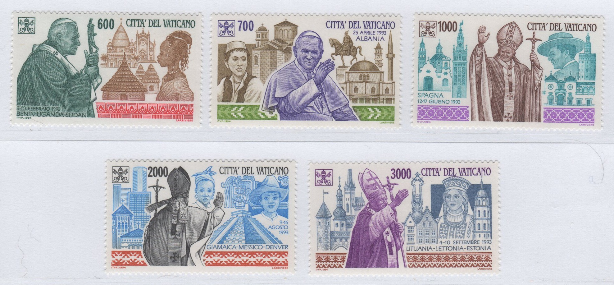 Francobolli Vaticano Anno 1994 I viaggi di Giovanni Paolo II nel 1993
