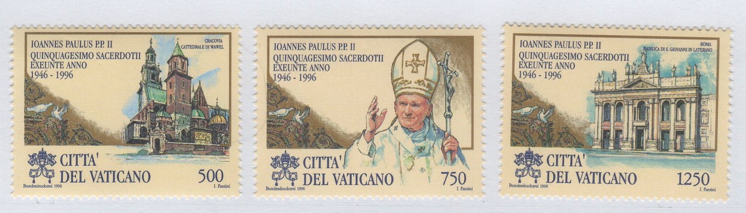 Francobolli Vaticano Anno 1996 Cinquantenario dell’Ordinazione Sacerdotale di Sua Santità Giovanni Paolo II