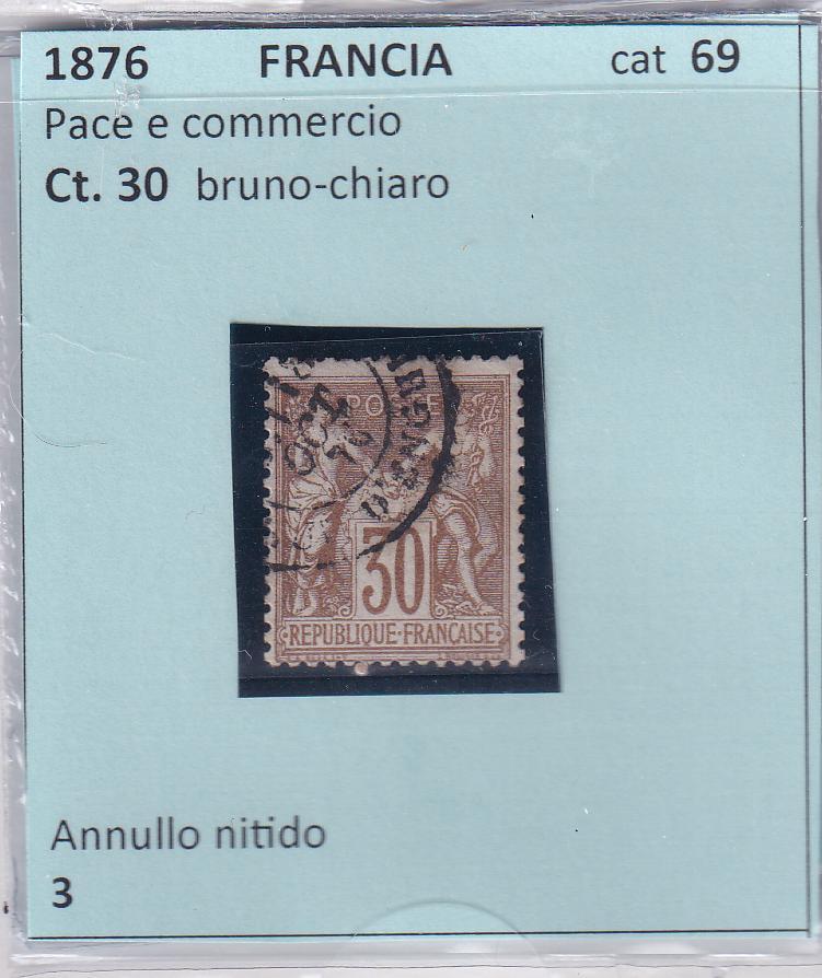 Francobollo Francia Anno 1876 Tipo Sage Gruppo allegorico Ct.30 bruno chiaro