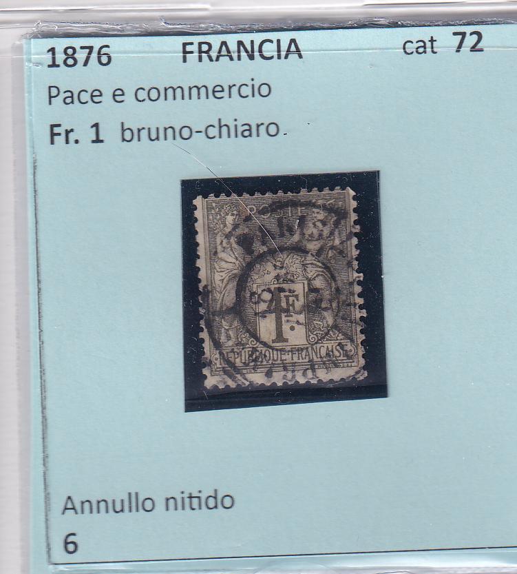 Francobollo Francia Anno 1876 Tipo Sage Gruppo allegorico Fr.1 bruno chiaro