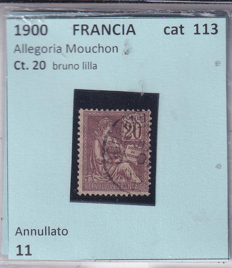 Francobollo Francia Anno 1900 Allegoria tipo Mouchon Ct.20 bruno lilla
