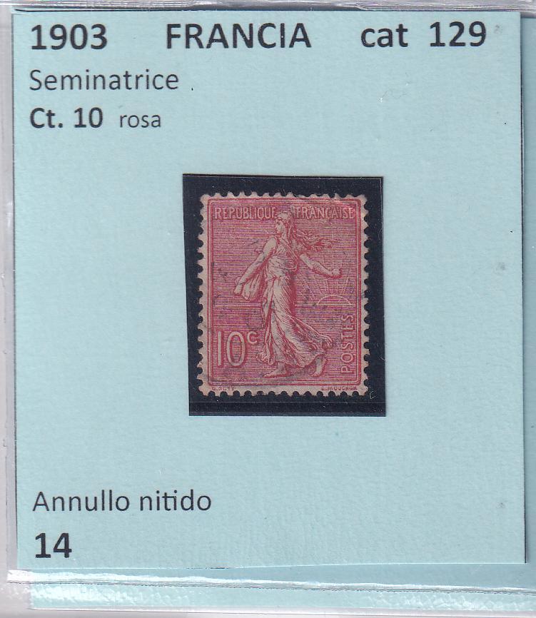 Francobollo Francia Anno 1903 Seminatrice su fondo a linee Ct.10 rosa