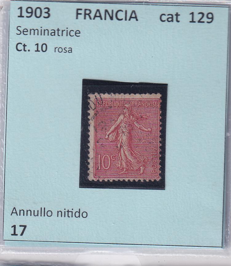 Francobollo Francia Anno 1903 Seminatrice su fondo a linee Ct.10 rosa