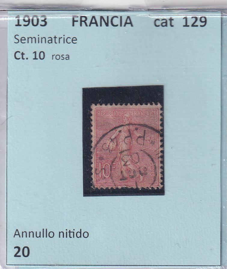 Francobollo Francia Anno 1903 Seminatrice su fondo a linee Ct.10 rosa