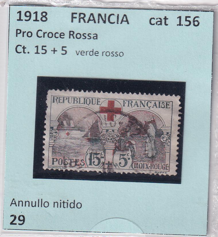 Francobollo Francia Anno 1918 Pro Croce Rossa Ct.15+5 verde rosso