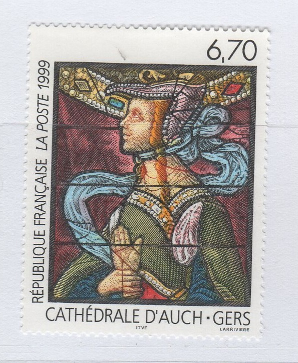 Francobollo Francia Anno 1999 Opere d’arte Vetrata Cattedrale d’Auch