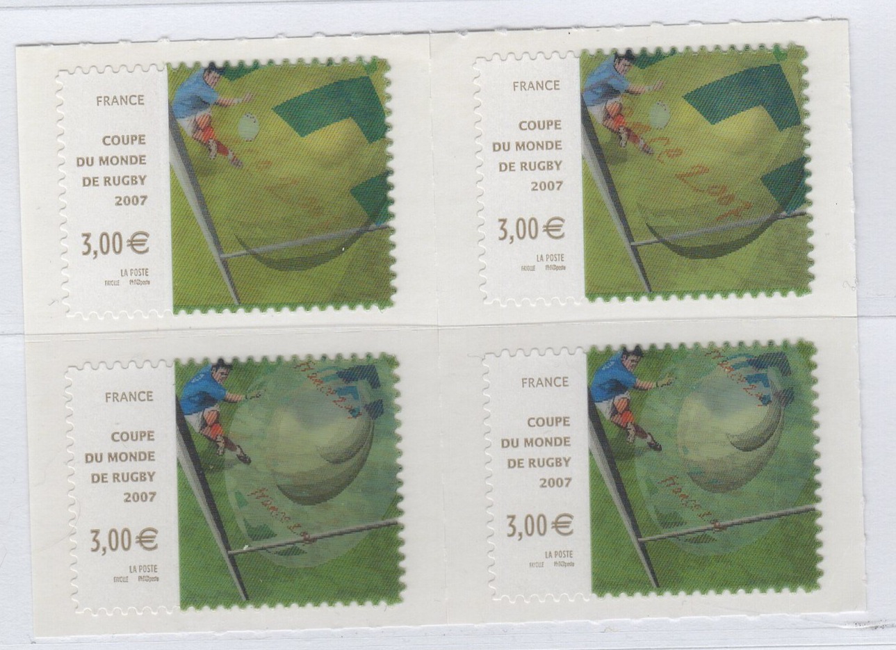 Francobollo Francia Anno 2007 Coppa del mondo 2007 di rugby Autoadesivo Quartina