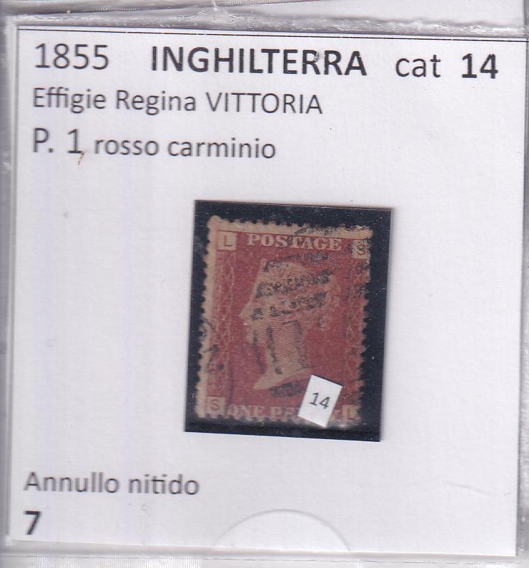 Francobollo Gran Bretagna Anno 1855 Effigie Regina Vittoria P.1 rosso carminio