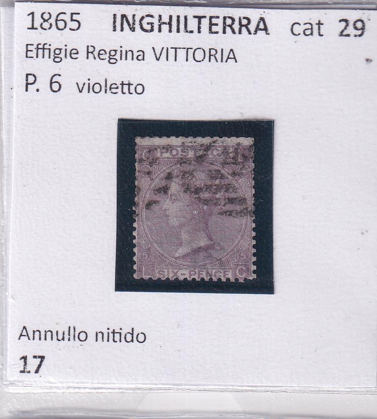 Francobollo Gran Bretagna Anno 1865 Effigie Regina Vittoria P.6 violetto