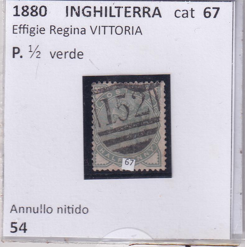 Francobollo Gran Bretagna Anno 1880 Effigie Regina Vittoria P.1/2 verde