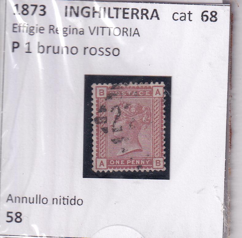 Francobollo Gran Bretagna Anno 1880 Effigie Regina Vittoria P.1 bruno rosso