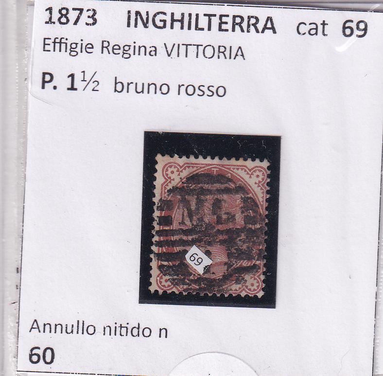 Francobollo Gran Bretagna Anno 1880 Effigie Regina Vittoria P.1 e 1/2 bruno rosso