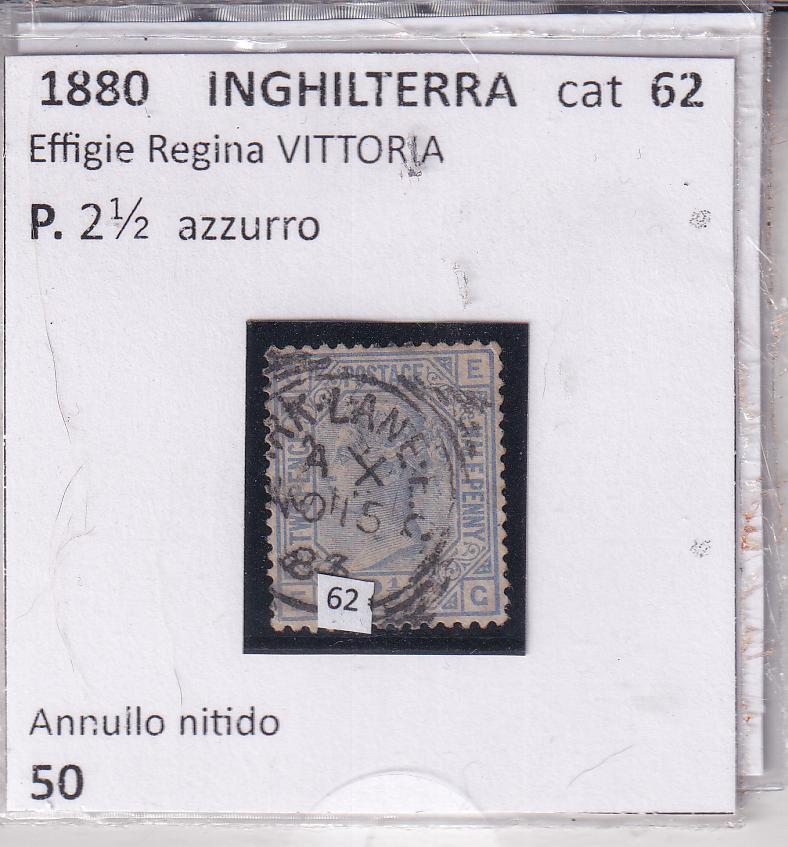 Francobollo Gran Bretagna Anno 1880 Effigie Regina Vittoria P.2 e 1/2 azzurro