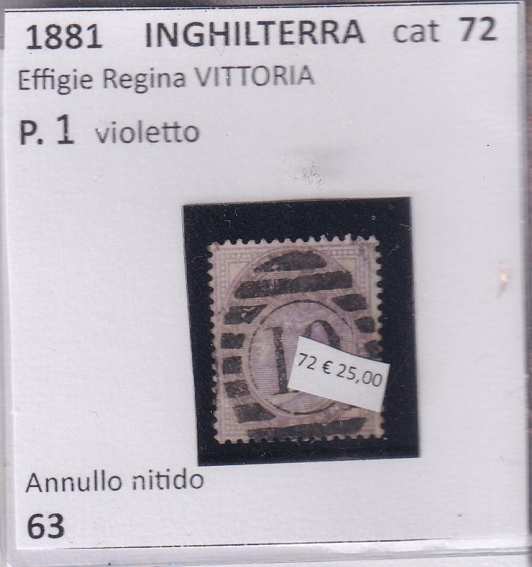 Francobollo Gran Bretagna Anno 1881 Effigie Regina Vittoria P.1 violetto