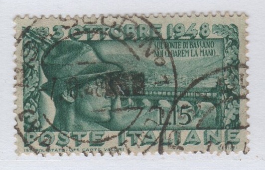 Francobollo Italia Repubblica Anno 1948 Ricostruzione del Ponte degli Alpini a Bassano del Grappa Timbrato