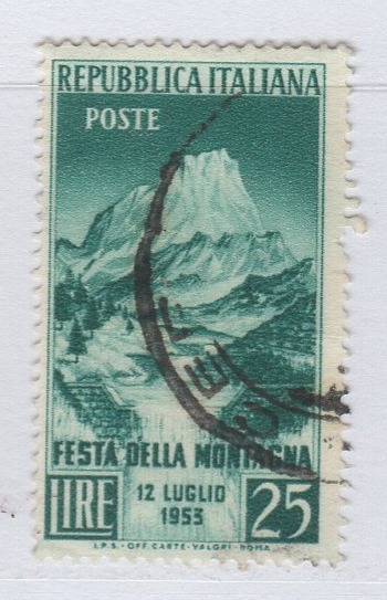 Francobollo Italia Repubblica Anno 1953 Festa della Montagna Timbrato