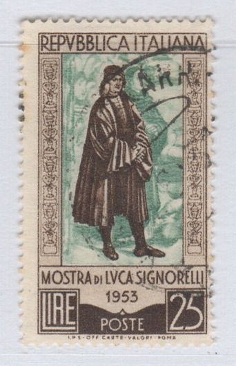 Francobollo Italia Repubblica Anno 1953 Mostra delle opere di Luca Signorelli Timbrato