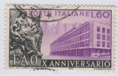 Francobollo Italia Repubblica Anno 1955 Decimo anniversario della FAO Timbrato