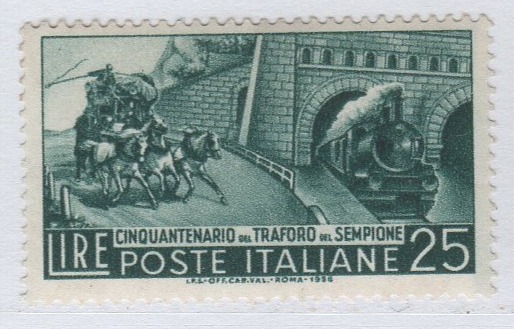 Francobollo Italia Repubblica Anno 1956 Cinquantenario del Traforo del Sempione