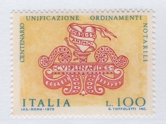 Francobollo Italia Repubblica Anno 1975 Centenario della legge organica del Notariato