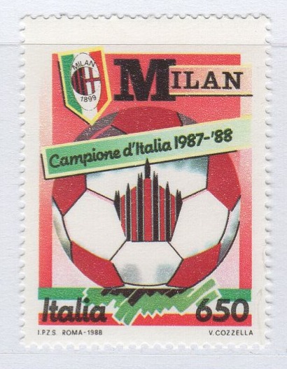 Francobollo Italia Repubblica Anno 1988 Milan Campione d’Italia 1987-1988