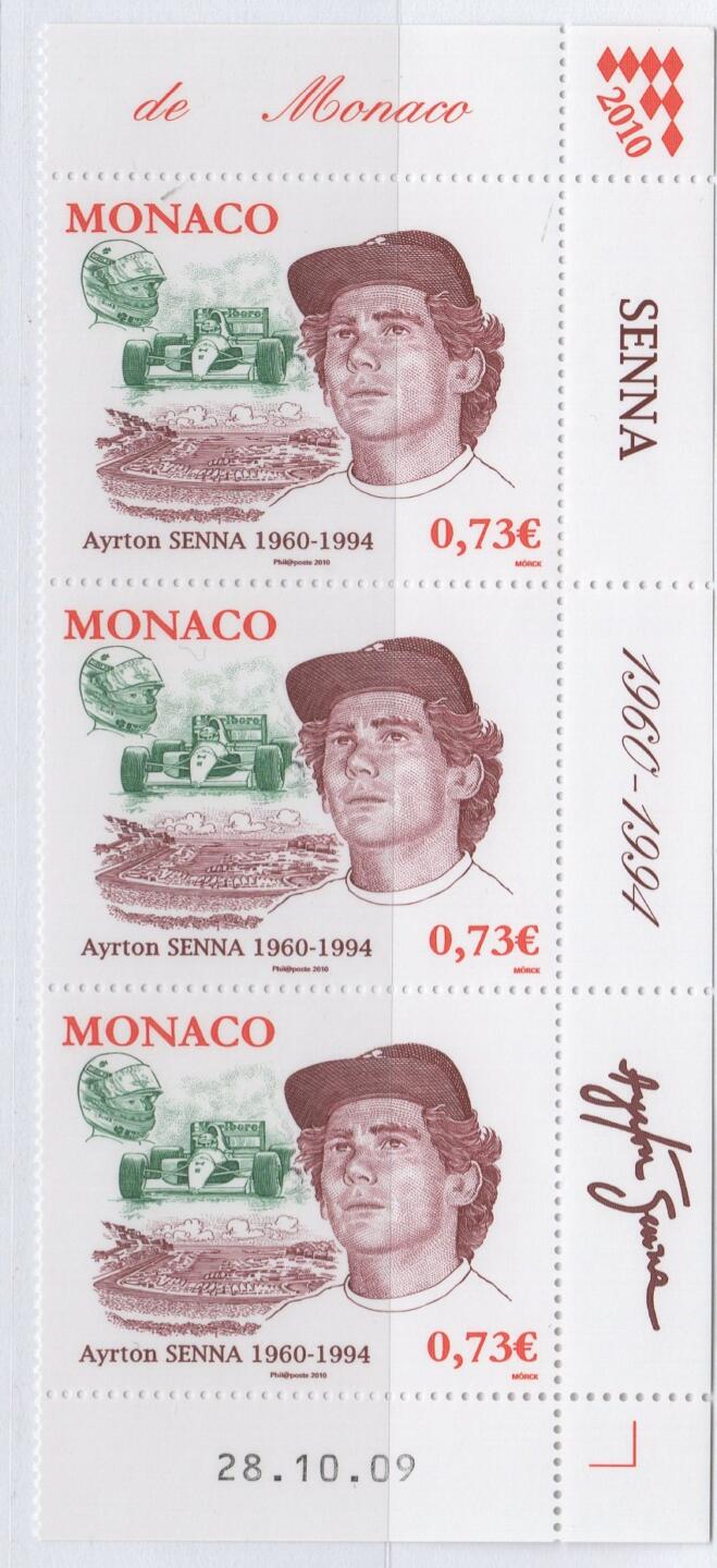 Francobollo Monaco Anno 2009 Cinquantenario della nascita di Ayrton Senna