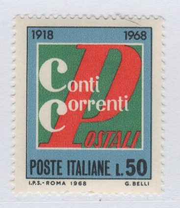 Francobollo Repubblica Italiana Anno 1968 Cinquantenario del servizio dei conti correnti postali