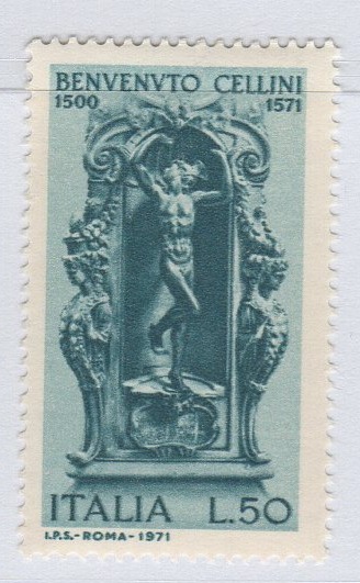 Francobollo Repubblica Italiana Anno 1971 Quarto centenario della morte di Benvenuto Cellini
