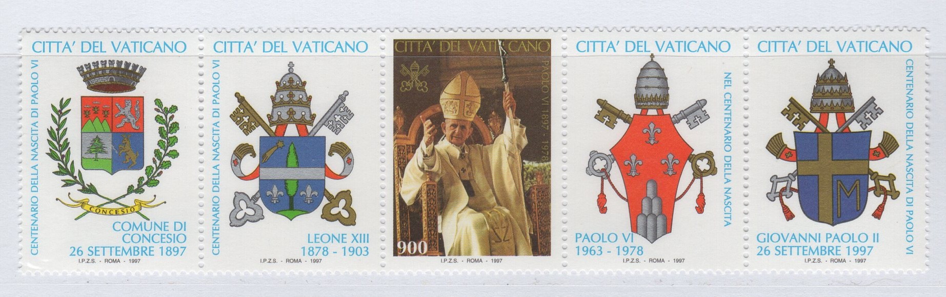 Francobollo Vaticano Anno 1997 Centenario della nascita di Papa Paolo VI