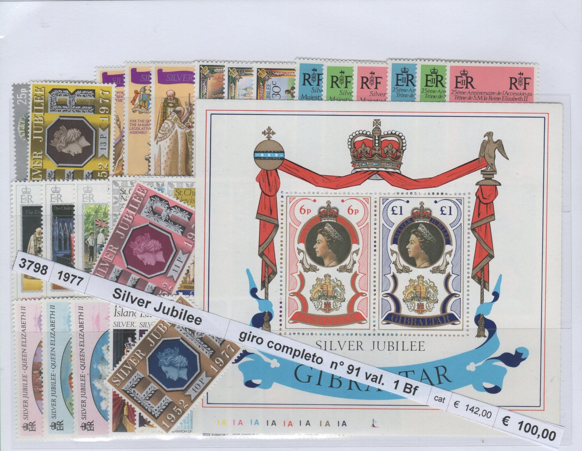 Giro completo delle emissioni di francobolli dei Paesi del Commonwealth per la celebrazione del Silver Jubilee della Regina Elisabetta II